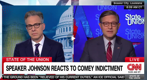 CNN's Jake Tapper Confronts Speaker Johnson Over Comey Indictment - Gets Schooled Instantly